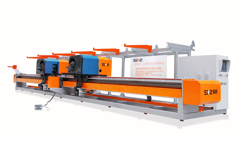 本机是数控多功能弯箍机,集矫直、弯曲成型、切断三种功能于一体,钢筋弯箍,一次成型;具有辅助劳动少、加工速度快、精度高、加工效率高、使用寿命长等特点,是我公司独立研发的具有自主知识产权的高科技产品。该设备为国内首创,填补了国内的技术空白。本机需配套使用多点支撑式料架进料。多点支撑式料架是我公司针对国内建筑市场的实际需求,独自研发的又一款专利产品,该进料架放送钢筋顺畅,安装简单,使用方便,降低了钢筋矫直时的调整难度,延长了矫直机构的使用寿命,提高了钢筋的矫直效果。总之,我们的产品贴近市场,力求多样化,满足用户需要,简约有效,以降低成本,为用户带来实惠。