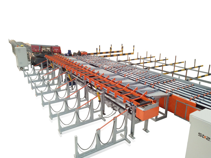 本机是一种主要针对大直径、高强度钢筋棒材的下料设备,能够将钢筋棒材按照需要,自动切断成所需长度,并对下好料的棒材进行分类储存的全自动一体化机器。本机广泛用于建筑、高速公路等行业,适用于各种规格不同长度的钢筋切断工作,对于规格多,批量小的钢筋切断工作更加适用。